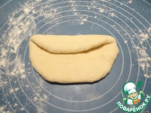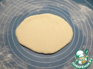 Используя муку для подпыла, раскатываю из одного кусочка теста небольшой круг.