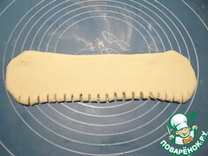 С помощью ножа делаю надрезы по краю полосы из теста примерно через 0,7-1 см.