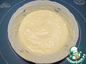 Затем готовлю начинку, как в моем рецепте "Медовые булочки с начинкой из сливочно-творожного сыра" (Сливочный творожный сыр и сахар взбиваю немного миксером, добавляю яйцо, опять немного взбиваю. Добавляю просеянную муку, взбиваю, постепенно добавляю холодное молоко, продолжая взбивать. Помещаю миску в микроволновую печь, нагреваю массу на полной мощности в течение 1,5-2-х минут. Массу опять немного взбиваю, снова нагреваю в микроволновой печи, и так трижды. Добавляю лимонный сок и сливочное масло и еще немного взбиваю массу миксером. Начинка готова. Даю ей немного остыть, накрываю пленкой и оставляю до полного остывания (если начинку не накрыть, верх засохнет)).
