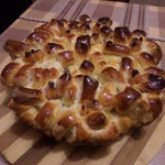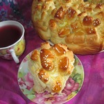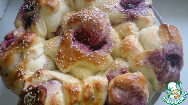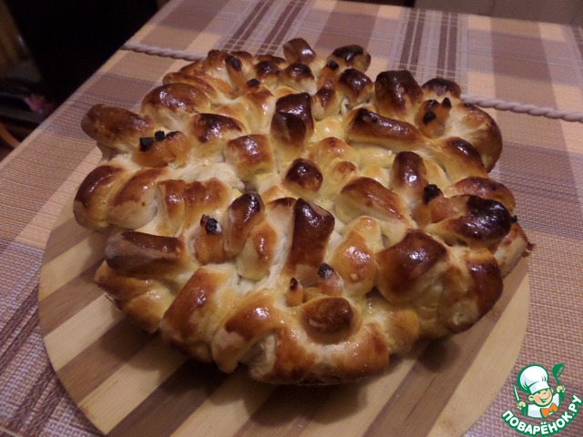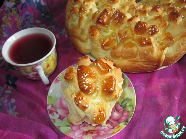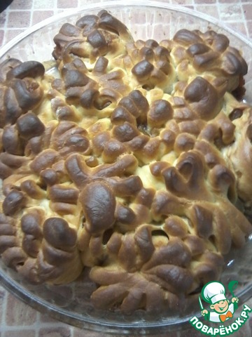 Как и обещала, делюсь сладким вариантом пирога с формовкой, похожей на букет цветов. Ароматный, с двумя видами сладкой начинки пирог нам очень понравился! Надеюсь, он придется по вкусу и Вам!