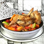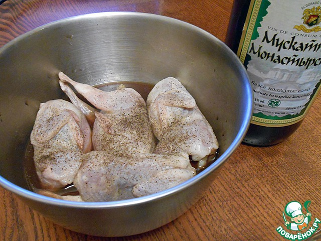 Уложить тушки перепелов, воткнуть в центр перчик-чили.
