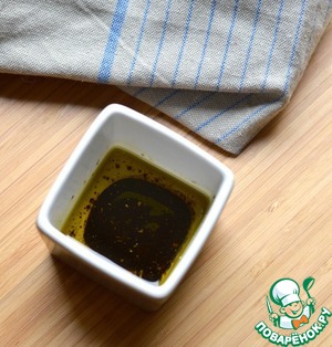 Подготовить заправку: смешать оливковое масло, бальзамический уксус, мед, соль и перец. Размешать. Не волнуйтесь, что у вас не получается однородной массы, это нормально.