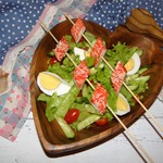 Рецепт «Салат с брошетами из крабовых палочек»: