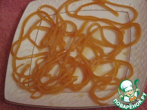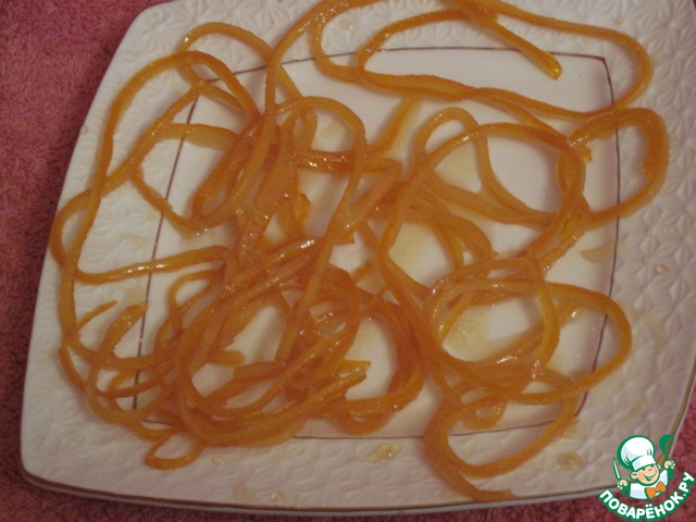 Тонкие нити из апельсиновой цедры положим в отцеженный ранее сироп и проварим в течение 15 минут.