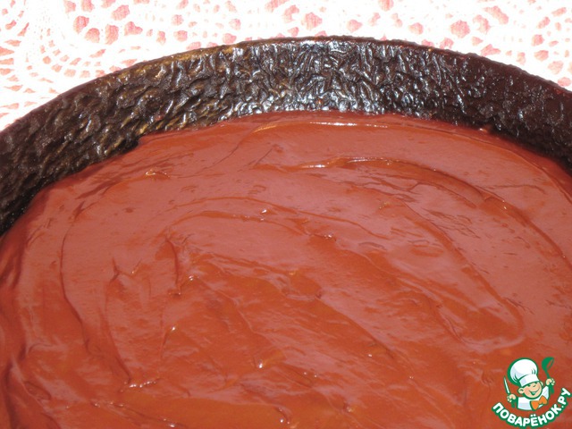Полученную массу выльем в форму, на дно которой предварительно положим пергамент. Поставим выпекать в духовку при температуре 180 градусов на 30 минут.