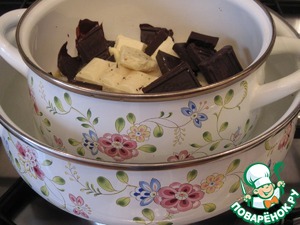 Шоколад поломаем на кусочки, добавим масло и растопим массу на водяной бане.