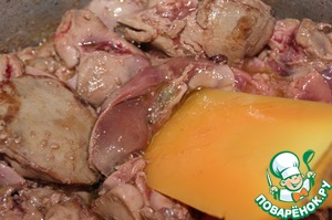 В глубоком сотейнике быстро обжарить печень в хорошо нагретом растительном масле.