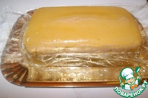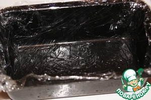 Форму размером 20х10 см смочить и накрыть полностью пищевой пленкой. -