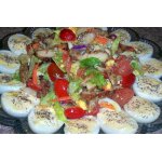 Ну, очень вкусный! Ингредиенты добавляла по вкусу своей семьи, но мне кажется, что именно такой состав наиболее подходящий! И заправочку тоже сделала на свой вкус :) Люблю экспериментировать! :) Бесподобно подходит к праздничному столу, особенно, если украсить сверху красной икрой!!!