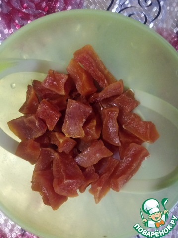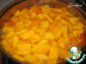 Тыкву очистить от кожуры и мякоти, нарезать на небольшие кусочки (примерно 1х2 см.).