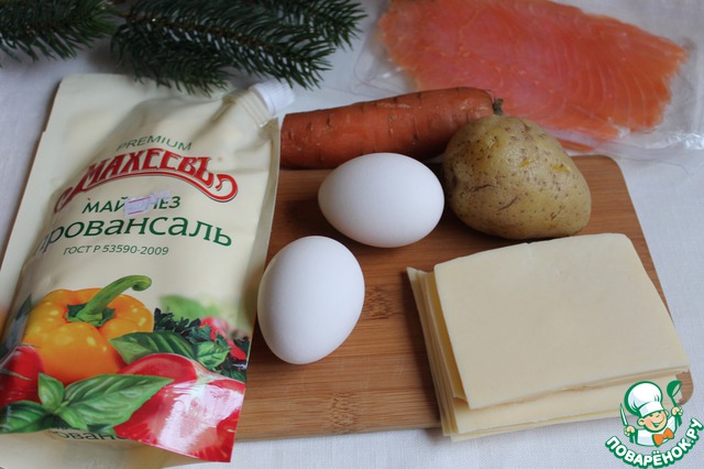 Такие продукты нам понадобятся. Морковь, картофель и яйца надо отварить.