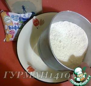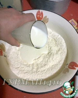 5. Выливаем сюда 1 стакан кефира или сыворотки (у меня сегодня «Бифилайф»)