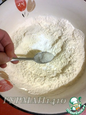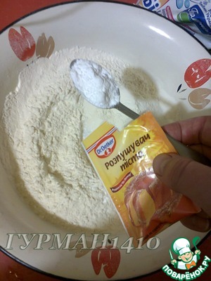 2. Добавить сюда 1 чайную ложку разрыхлителя.