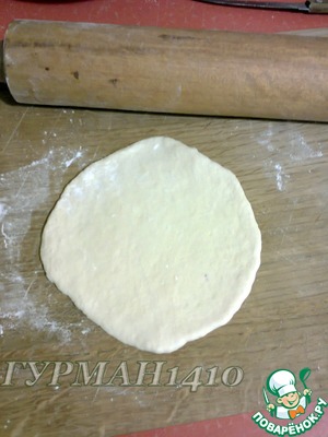 Разровнять руками лепешку, придав ей немного круглой формы, или сразу раскатать.