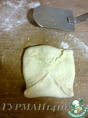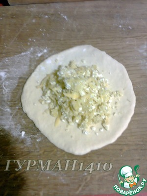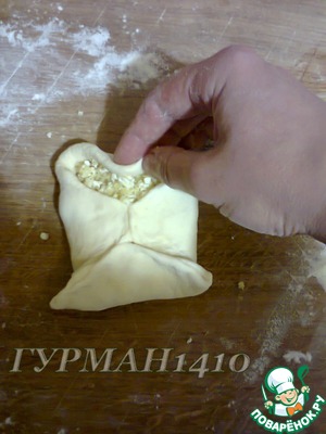18. Защипать края. Сначала защипать посередине, потом верх и низ лепешки, сложив "конвертом" до середины, тоже защипать с соседними краями.