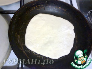 20. Раскатать до размера дна сковороды (у меня лепешка в размер средней тарелки).