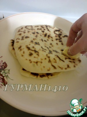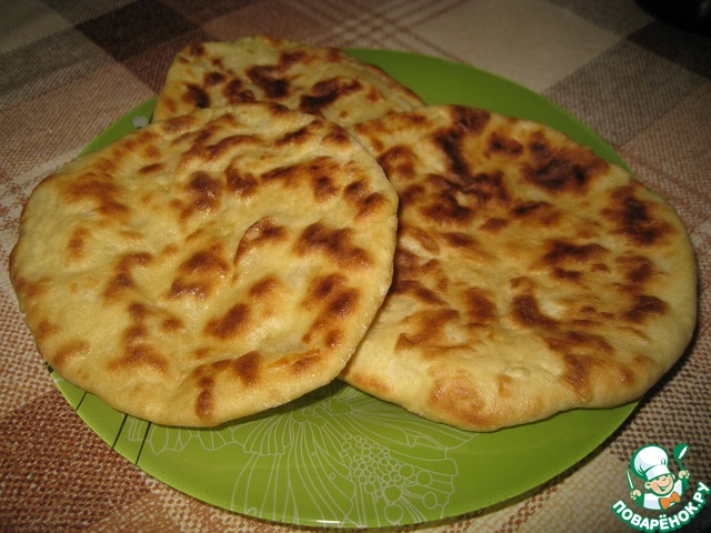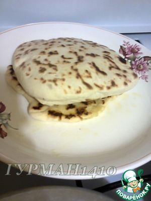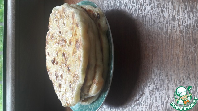 24. Хачапури переложить на блюдо. При снятии со сковороды хачапури принимает опять форму лепешки.