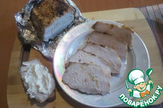 Горчицу и приправы смешать, половину специй посыпать на пленку.
