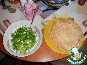 Выпекаем наши пивные блинчики. намазываем рыбной кашкой.