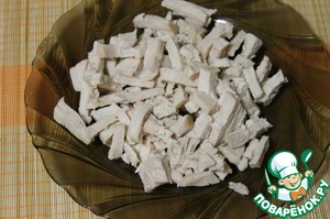 Куриную грудку отварить и остудить в бульоне