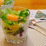 Может быть, есть другое фото? Или хотя бы обрезать этот кадр, чтобы бокал с салатом был виднее?