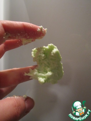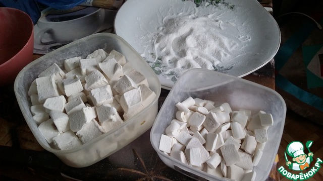 Кусочки зефира обваливаем в смеси пудры и крахмала. -