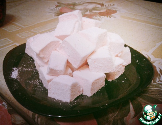 Думаю, активным пользователям Поваренка известно, что такое «мармышки». Он же Marshmallows, он же Маршмеллоу. Это жевательный зефир. Не все понимают его вкус и в основном используют для приготовления мастики. На сайте уже есть рецепты с таким названием, но в них одним из главных ингредиентов фигурирует яичный белок. Я готовила подобное несколько раз – безусловно, вкусно, но… не то! Маршмеллоу на белках больше похож на воздушное суфле, легко проглатывается, практически не жуя. Настоящие маршмеллоу по структуре плотные, жевательные и… растягивающиеся))) Все это благодаря инвертному сиропу, это он делает зефирки такими пластичными. И – да! – в маршмеллоу не используются белки. Честное слово)) Кстати, помимо мастики, маршмеллоу годится и кое для чего другого…