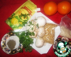 Ингредиенты для «Нарядный апельсин с начинкой из кедровых орешков, риса и грибов»:
