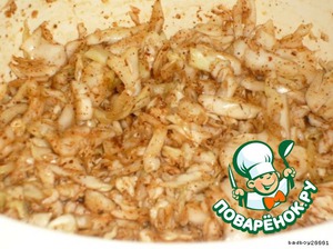 А Александр Данилыч взял немного сольки, и перца сухого сладкого красного присыпал капустку и примял слегка. -