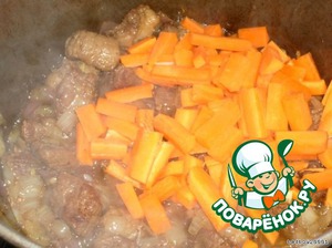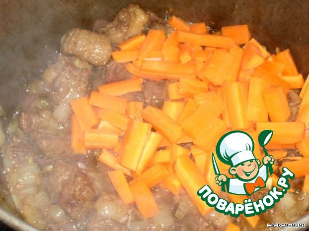 Не долго дал ей князь томиться с мяском, ну минутки 3-4, и положил картофель.