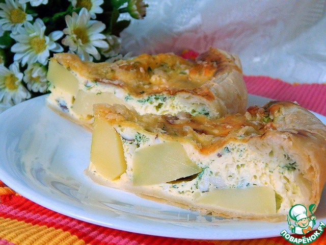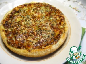 Сытно, пикантно, ново - именно так предстает пред нами этот пирог с золотистой сырной корочкой.