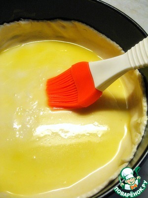 Тесто разморозить, слегка раскатать и выложить в смазанную маслом разъемную форму d=26 см. Сделать бортики. Лишнее тесто срезать.