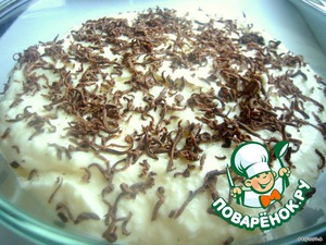 Выложить половину крема, обсыпать второй половиной шоколада