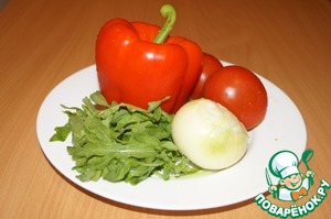 Помидоры нарезаем кружочками и обжариваем с двух сторон на сковороде. Из болгарского перца и лука можно приготовить соус. Добавить туда помидор, чайную ложку муки, соль, перец и воды.