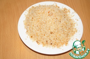 Немного затвердевший белый хлеб пропускаем через блендер и добавляем в крабовую массу, туда же добавляем 1-2 яйца и вымешиваем фарш.