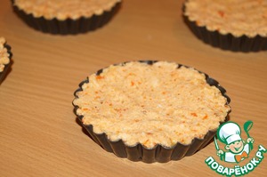 В приготовленные формочки, смазанные оливковым маслом, закладываем фарш и запекаем в разогретой духовке до 180 градусов 15-20 минут.