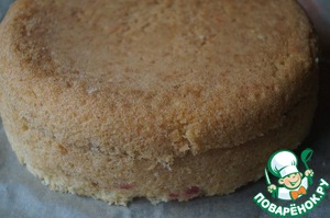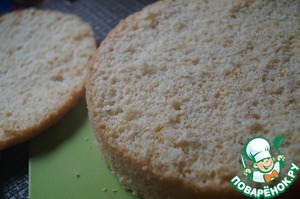 Срезаем у бисквита верхушку, примерно 1\3 или 1\4 часть, в зависимости от высоты.