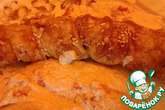Запекаем в предварительно нагретой до 180*С духовке, у меня ушло 20 минут, советую ориентироваться на свою духовку и периодически проверять. -