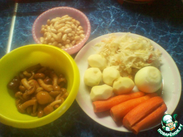 Ингредиенты для «Кислый борщ с грибами и фасолью»: