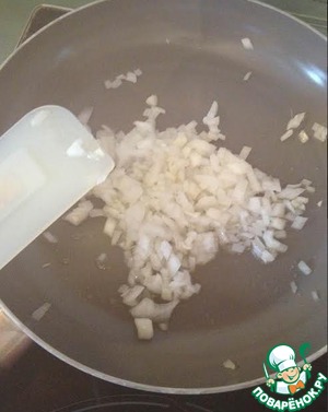Пока варится чечевица, поджарить мелко рубленный лук,
