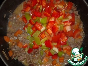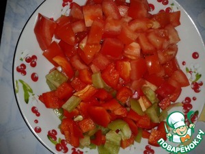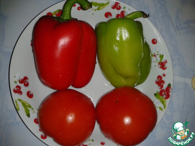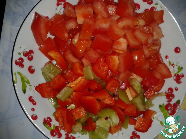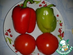 В то время, пока все это готовится, приготавливаем помидор и перец.