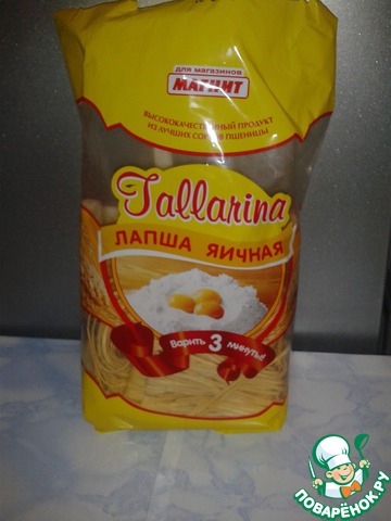 В самом конце отдельно отвариваем лапшу. Я использовала магазинную.
