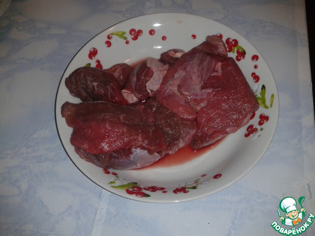 Приготавливаем мясо. Если оно было заморожено, то размораживаем. Я делала это в микроволновке, т. к. спешила, но лучше всего сделать это естественным путем - просто подождать.