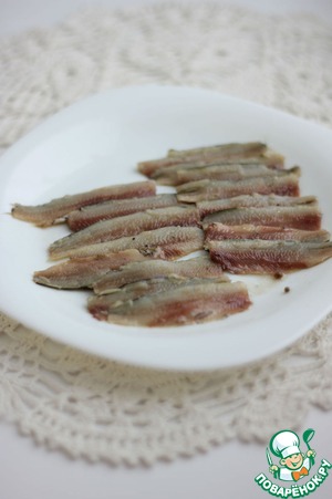 Надрезать брюшко кильки, вынуть хребет, отрезать хвостик. Должны получиться распластанные тушки
