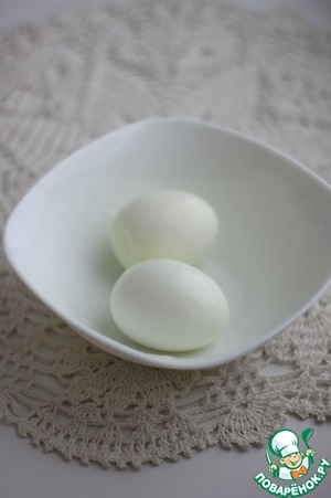 Сварить яйца вкрутую, отделить белки и желтки