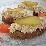 Очень вкусно на тостах с огурцами - свежими или солеными.