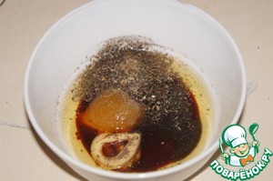 - Соевый соус (1 - в маринад, 1 - в заправку) — 2 ст. л.