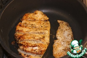Мясо обжарить до легкой румяной корочки с двух сторон, затем поставить в разогретую духовку на 15 минут.