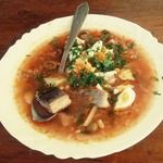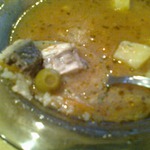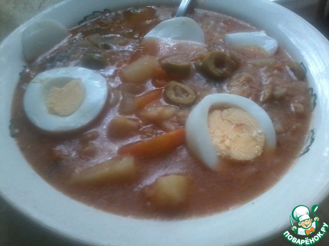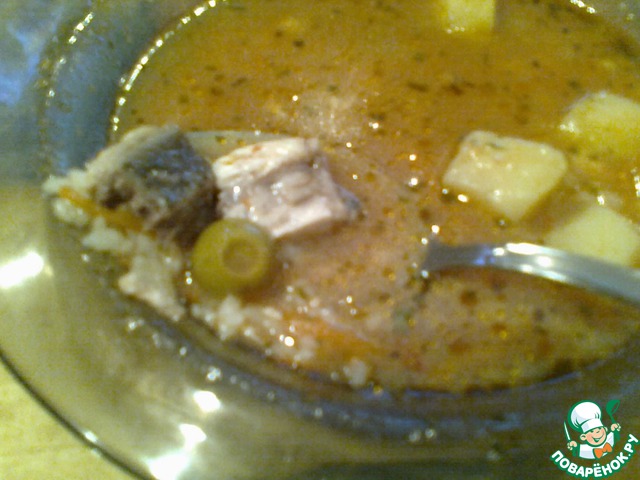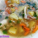 Муж сидел перед телевизором, я принесла ему попробовать суп, боялась, что переперчила... он попробовал. Минут через 5 заходит на кухню (Внимание, время 21 час, а муж никогда не ест после 19 часов, только чашка чая в 21 час) и говорит: "Вот, мучаюсь... не могу решить, то ли супчика съесть, то ли чаю выпить... Больно вкусно." Не удержался, съел маленькую тарелочку супа (просто невероятное событие), сказал: "Офигенский суп!" и ушел спать... Такие вот дела. А я попробую завтра, обещали ведь, что будет еще вкуснее!!!