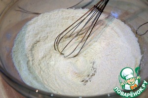 Итак, муку просеять в миску, добавить половину сахара (95 г), ванильный сахар и соль на кончике ножа. Перемешать сухую смесь венчиком, чтобы насытить ее кислородом.